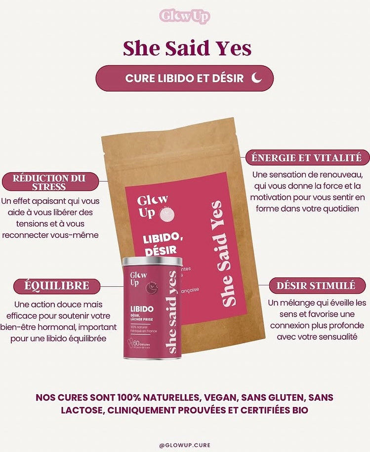 SHE SAID YES est une cure de plantes 100% naturelles, bio, vegan, sans gluten et sans lactose, spécialement formulée pour :
